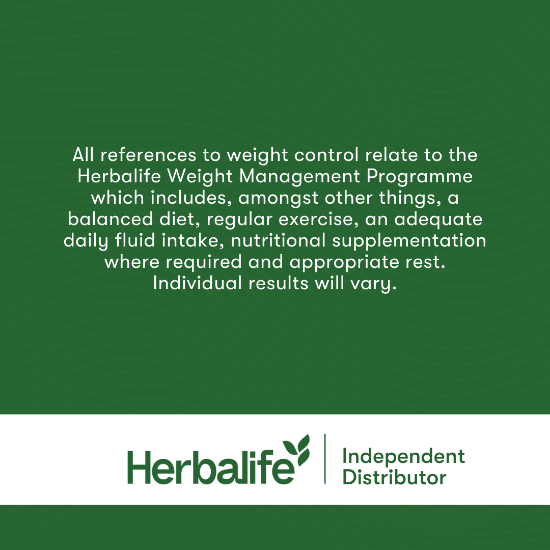 All references to weight control relate to the Herbalife Weight Management Programme which includes, amongst other things, a balanced diet, regular exercise, an adequate daily fluid intake, nutritional supplementation where required and appropriate rest,